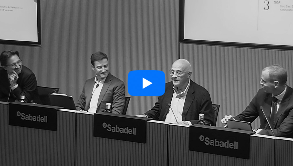 El passat 10 d’octubre va tenir lloc una trobada per accionistes de Banc Sabadell a Madrid la qual es va poder seguir també en format remot a través del web corporatiu. Josep Oliu, president del Banc, va donar la benvinguda als assistents, posteriorment, el director financer, Leopoldo Alvear, i el cap d’economistes adjunt, Sergi Martrat, van explicar l’actual entorn macroeconòmic i els resultats del primer semestre de l’any i les perspectives de Banc Sabadell pel 2023. Finalment, els accionistes també van tenir l’oportunitat de plantejar les seves qüestions als ponents durant el torn de precs i preguntes.